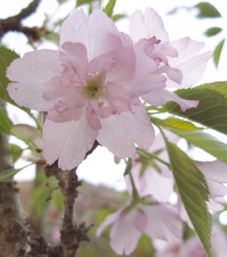 花の付きは多くはないのですが、普賢象桜の方は、八重桜らしい量感のある花を咲かせています。御衣黄は、緑色