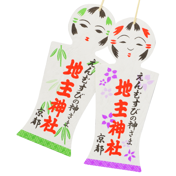 「七夕こけし」は、恋愛成就七夕祭の折に、お願い事を書き、本殿前にしつらえた大笹に結びつける祈願お札です。